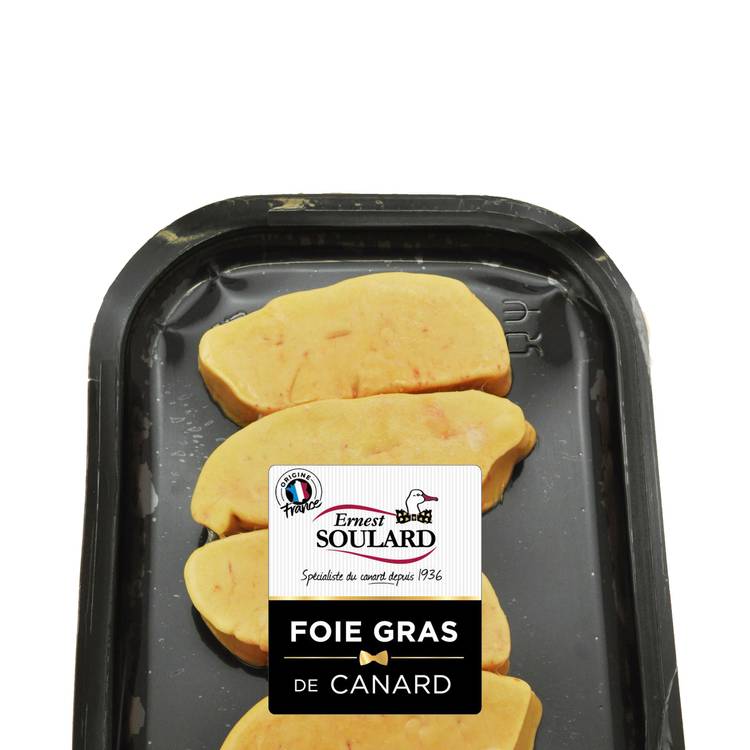 Des escalopes épaisses, prêtes à dorer, avec ce qu’il faut de tenue et de fondant. Le foie gras de canard, dans sa version la plus brute, la plus gourmande aussi. Pas de chichi : juste un bon coup de poêle, feu vif, et quelques minutes de chaque côté. La croûte se forme, l’intérieur reste moelleux, presque coulant.