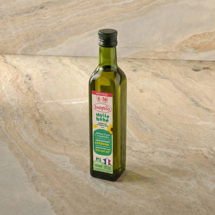 Une cuillère de cette huile bébé bio donne de l’élan aux petits plats dès 4 mois. Elle est un mélange d’huiles végétales bio de colza et tournesol, issues de productions françaises. Naturellement riche en Oméga 3 et 6 et en vitamine E, elle aide au développement normal du cerveau et à la protection cellulaire. Un petit filet dans la purée ou les légumes de bébé suffit pour couvrir ses besoins essentiels en acides gras — un geste simple pour sa croissance et son équilibre.