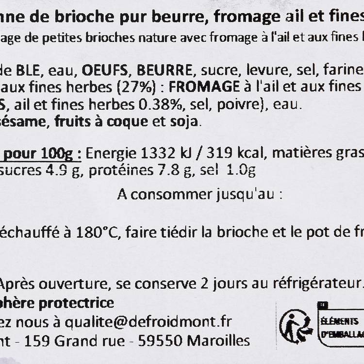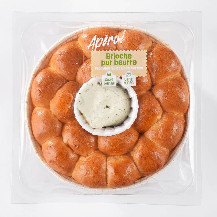Un assemblage de brioches natures pur beurre, généreusement garnies d’un fromage à l’ail et aux fines herbes. Ici, on ne parle pas d’une simple brioche fourrée, mais d’un vrai travail d’équilibre entre le moelleux légèrement sucré de la pâte et le caractère crémeux, salé et parfumé du fromage. Chaque bouchée oscille entre douceur et fraîcheur, avec cette pointe d’ail qui réveille, sans jamais dominer.
