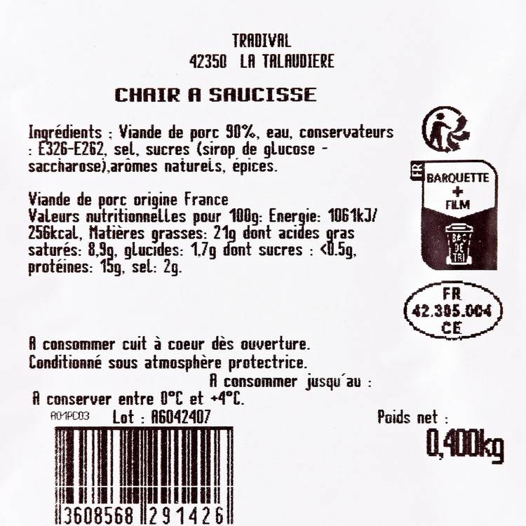 Préparation et cuisson : À cuire impérativement. À poêler, à incorporer dans une farce ou à émietter dans une sauce. Environ 10 à 15 minutes à feu moyen, jusqu’à ce qu’elle soit bien dorée et cuite à cœur.