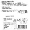 Origine & savoir-faire : Le lomo est élaboré à partir de longe de porc, une pièce noble particulièrement maigre. Salée puis séchée lentement, la viande développe sa texture ferme et son goût concentré. Cette charcuterie sèche espagnole est ensuite tranchée très finement en chiffonnade pour révéler toute sa finesse.