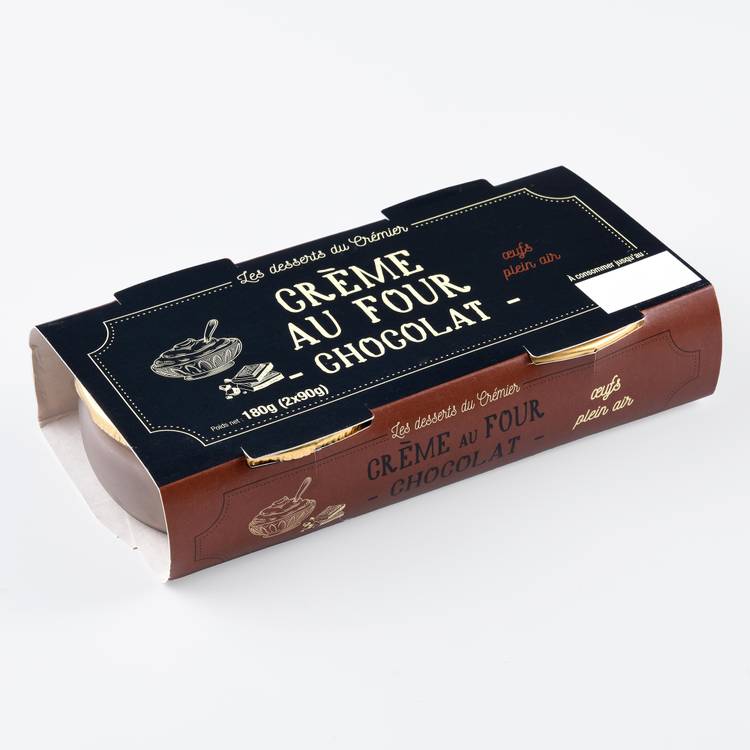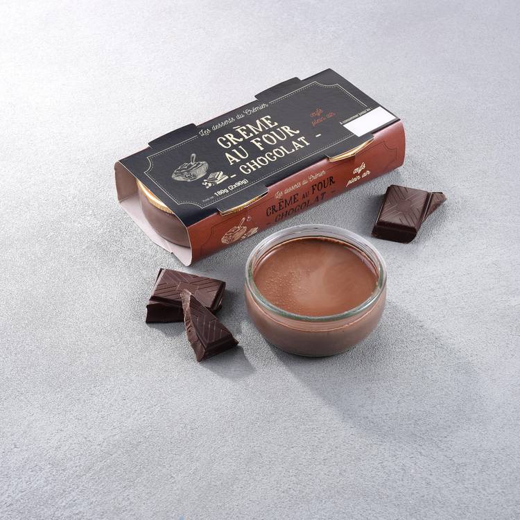 Crème au four chocolat, version intense et généreuse. Cuite lentement, comme à l’ancienne, pour une texture unique : ferme au départ, puis fondante en bouche. Elle se tient, elle rassure. On est loin des crèmes légères ou mousseuses. Ici, le chocolat prend toute sa place, profond, rond, sans excès de sucre. Un goût de cacao franc, bien balancé, qui s’impose doucement mais sûrement.
