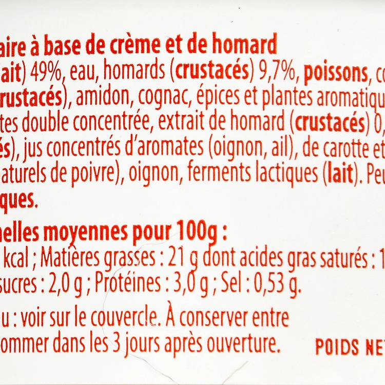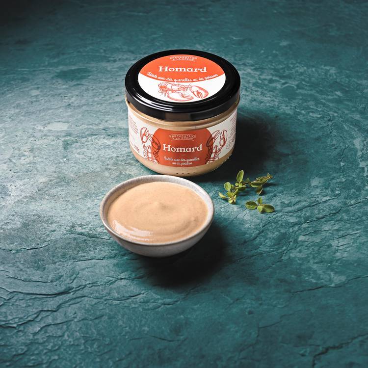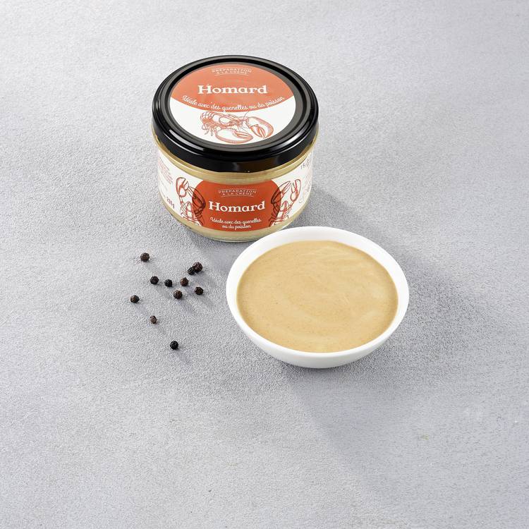Crémeuse, iodée, légèrement corsée… cette crème homardine ne fait pas dans la demi-mesure. On y retrouve une belle base de crème, relevée au cognac, avec du homard, mais aussi du crabe et un soupçon de crevette. Pas une sauce, pas une bisque, pas un simple coulis : une texture veloutée pile comme il faut, pour enrober pâtes fraîches, riz ou poissons poêlés.