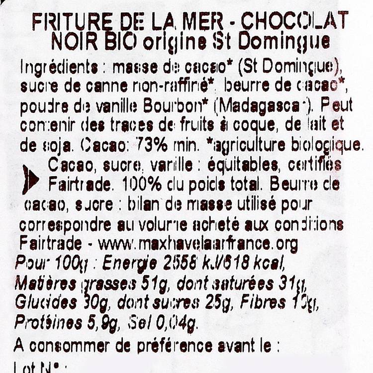 Chocolat noir, mer et nostalgie : trio gagnant. Cette friture en version bio mise sur un cacao intense, à la fois puissant et bien équilibré, pour faire craquer les amateurs de noir.