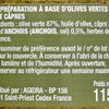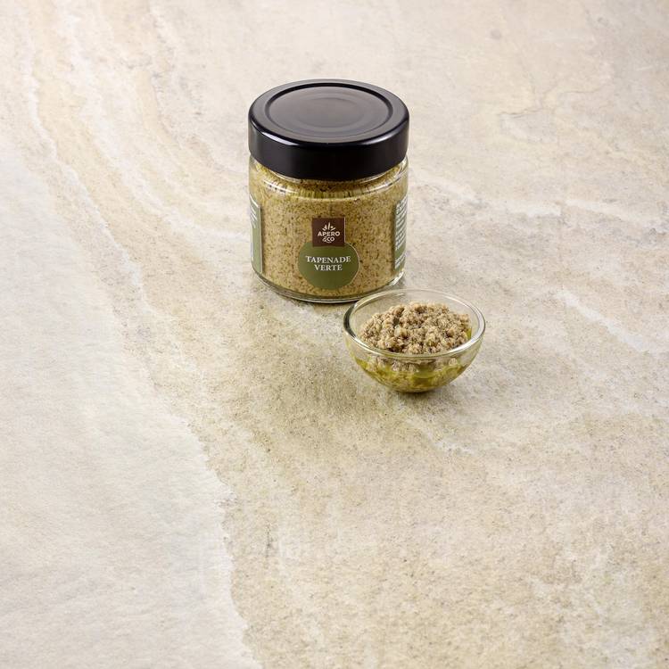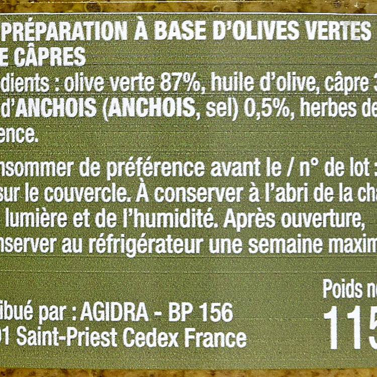 Origine : Élaborée à partir de 87 % d’olives vertes, associées à de l’huile d’olive, des câpres, un soupçon d’anchois et des herbes de Provence. Une composition courte et maîtrisée, fidèle aux recettes méditerranéennes où le goût prime sur le superflu.