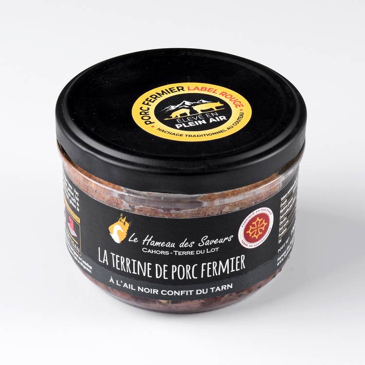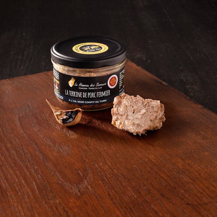 Chair fondante, ail noir confit… cette terrine coche toutes les cases du plaisir rustique. Le porc fermier donne une texture généreuse et un goût franc, bien balancé par les notes douces et presque balsamiques de l’ail noir. Pas trop salée, pas trop grasse : elle se tient bien, même en plein apéro.