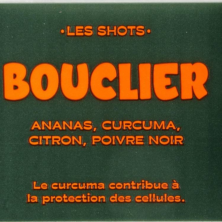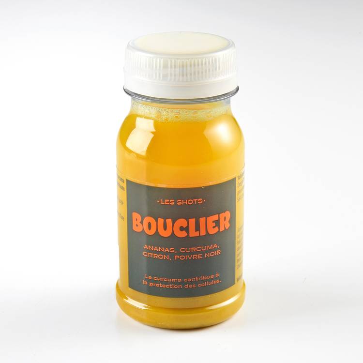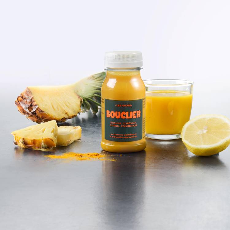 Un format mini, mais une recette bien pensée. Ce shot “bouclier” joue sur l’équilibre entre le jus d’ananas, doux et acidulé, et le curcuma, racine dorée aux notes chaudes et légèrement terreuses. Le poivre noir vient en soutien : pas là pour faire le show, mais pour activer la curcumine et booster les effets. Résultat, une gorgée pleine d’énergie, sans faux-semblants.