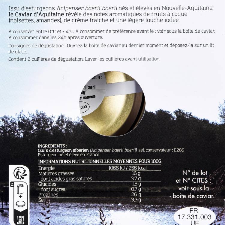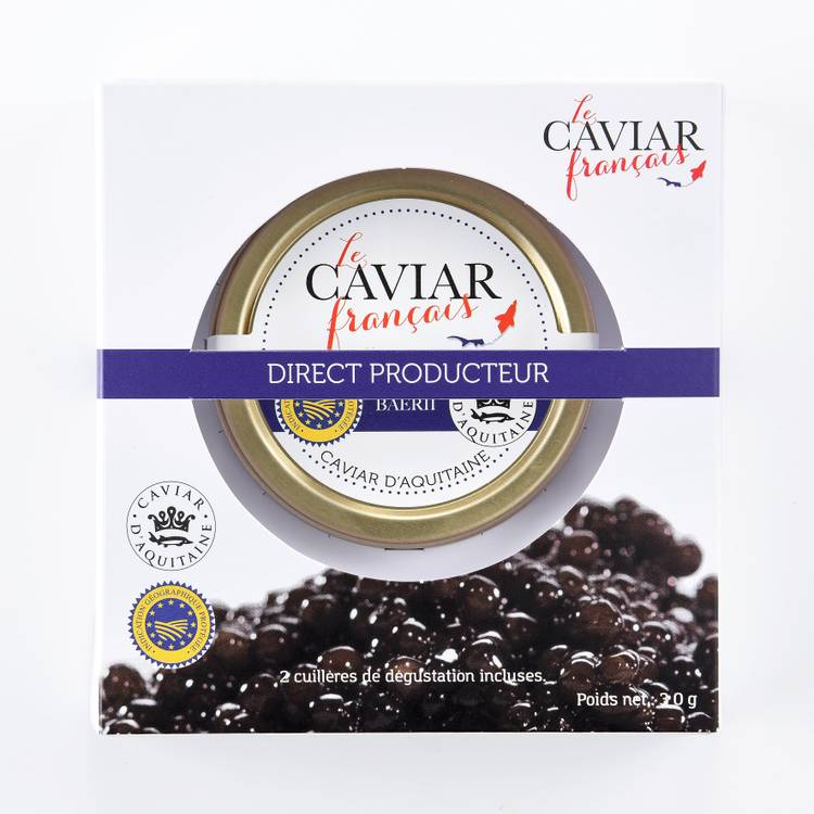 Notre caviar Baerii est composé d'oeufs d'esturgeon salés. Les oeufs sont d’origine France en Aquitaine. Ils sont dorés à bruns clairs avec des notes beurrées et une longueur en bouche.