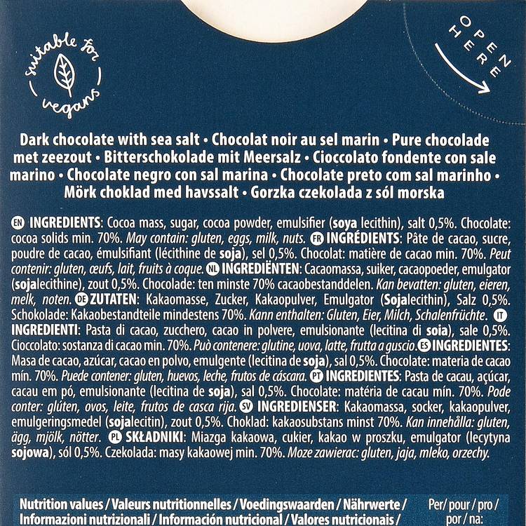 Saveur : Un cacao à 70 % puissant et profond, aux notes légèrement torréfiées et boisées. L’amertume est nette, élégante, puis le sel marin vient souligner le chocolat avec une touche minérale qui prolonge la longueur en bouche. L’équilibre est précis, jamais écrasant, toujours gourmand.