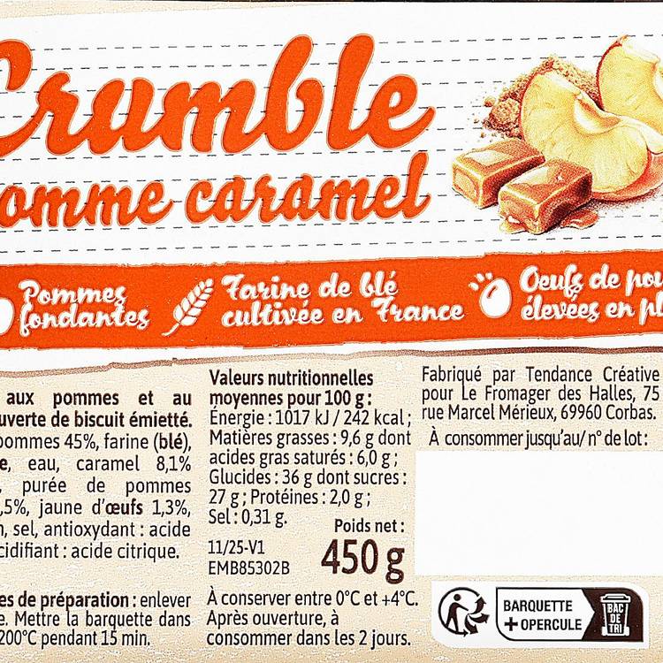 Conseils de conservation :À conserver au réfrigérateur et à consommer dans les 48 heures après ouverture. Filmez bien le plat pour préserver le moelleux des pommes et éviter que le biscuit ne ramollisse.