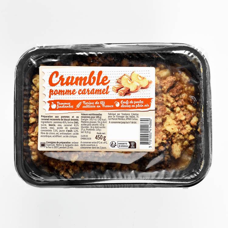 Texture : Sous la couche croustillante du biscuit émietté, la préparation aux pommes et au caramel est fondante, presque confite. Le contraste chaud-froid, croustillant-fondant fait tout le charme de ce crumble. À la cuillère, ça se casse, ça se mêle, ça disparaît vite.