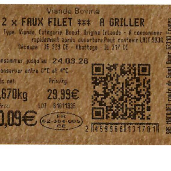 Race de viande : Issu du dos du bœuf, le faux-filet est une pièce noble très appréciée des amateurs de grillades. Sa fibre est fine, sa tenue à la cuisson excellente et son persillage naturel lui donne ce goût intense qui fait toute sa réputation.