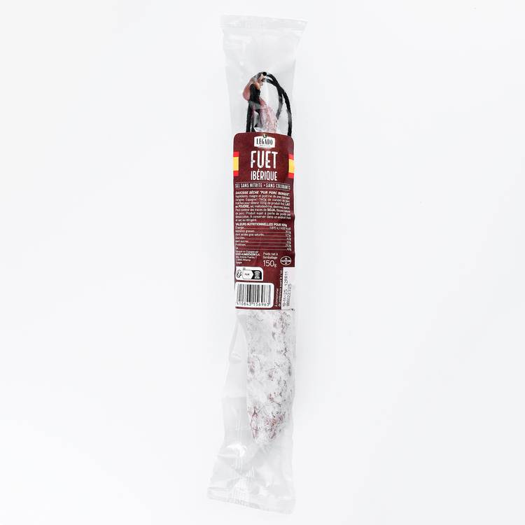 Un classique espagnol revisité en toute simplicité. Ce fuet ibérique est une saucisse sèche élaborée à partir de porc ibérique pur, élevé et transformé en Espagne. Une viande de caractère, marbrée juste comme il faut, pour une texture fondante et un goût profond. Sans nitrite, sans colorant, il mise sur l’essentiel : la qualité des ingrédients et le savoir-faire charcutier.