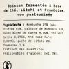 Origine : Issu de la fermentation du thé, ce kombucha est non pasteurisé, ce qui lui permet de conserver toute sa vivacité et ses arômes. L’association litchi-framboise apporte une dimension fruitée et délicate, entre exotisme et notes plus acidulées.