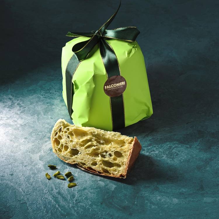 Falconieri habille ce format 500 g d’un vert vif, presque espiègle, contrasté par un ruban noir et or. Un paquet qui attire l’œil et qui promet une surprise à l’ouverture. Le goût, lui, tient ses promesses. Gourmand, mais équilibré, doux, mais pas naïf. À déguster à la main, ou en tranches fines avec un thé fumé ou un verre de Marsal. Le panettone à la pistache, c’est un peu comme une blague bien placée : inattendu, mais ça marche.