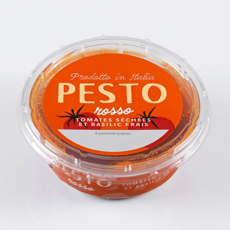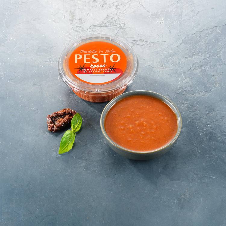 Decouvez le pesto rosso, un mélange savoureux de tomates séchées au soleil, de basilic aromatique et de riche parmesan. Parfait pour ajouter une touche de saveur vibrante à vos plats de pâtes, à vos sandwichs et même comme trempette pour vos snacks préférés. Notre pesto rosso est polyvalent et facile à utiliser, ce qui facilite la préparation des repas pour les soirs de semaine occupés ou les rassemblements du week-end. Il suffit de le tartiner sur du pain grillé, de l'ajouter à des pâtes cuites ou de l'arroser sur du poulet grillé pour obtenir une explosion de saveurs d'inspiration italienne.