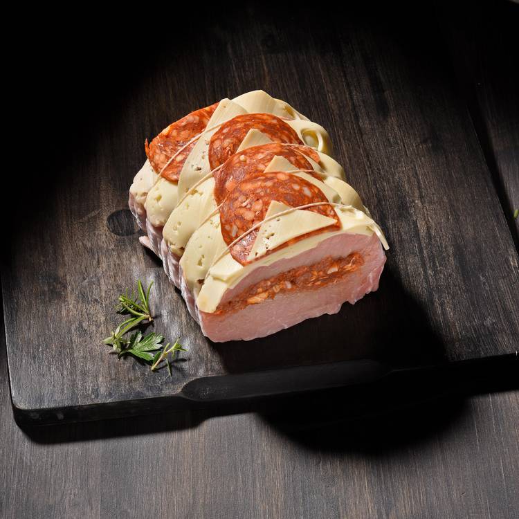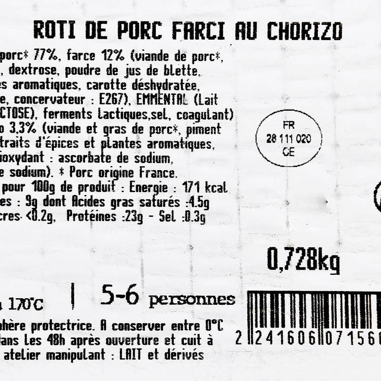 Saveur : Généreux et relevé, le rôti marie le moelleux du porc à la puissance du chorizo. Le gras fondu du chorizo parfume la viande sans la dominer.