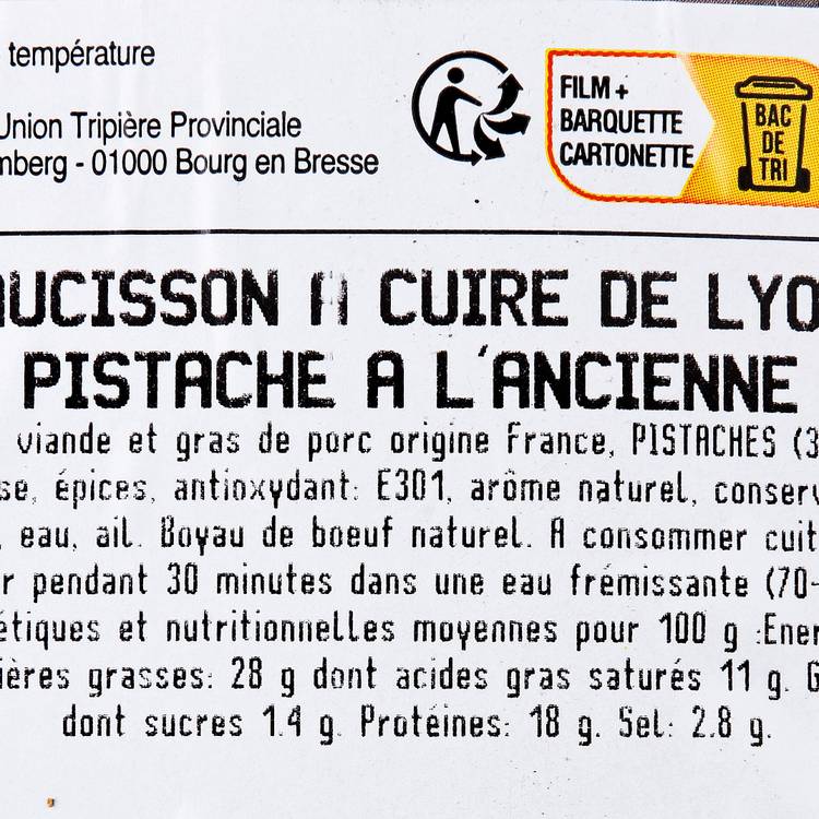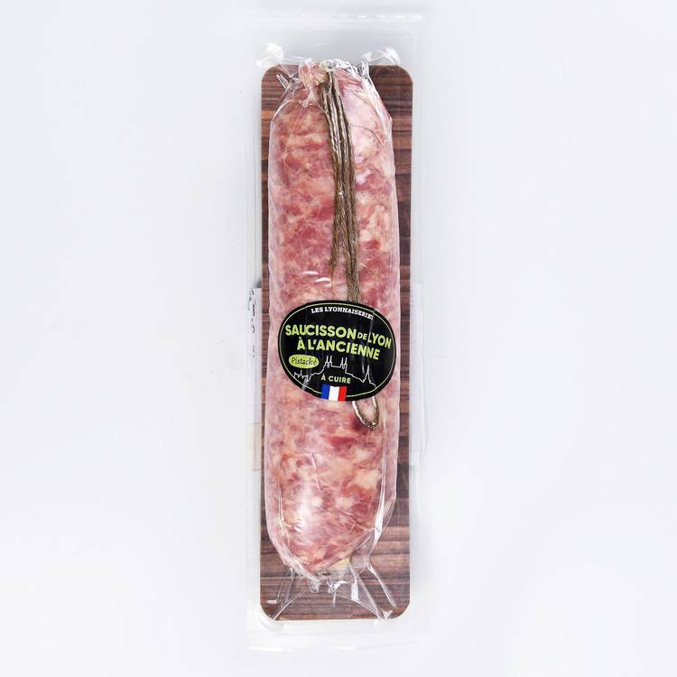 Un incontournable de la cuisine lyonnaise, dans sa version la plus fidèle. Ce saucisson à cuire à l’ancienne se distingue par sa générosité et sa texture moelleuse. La viande est bien présente, la pistache apporte une note douce et croquante qui fait toute la différence. Pas d’esbroufe, juste un produit franc, riche en goût, prêt à briller dans une bonne vieille cocotte.