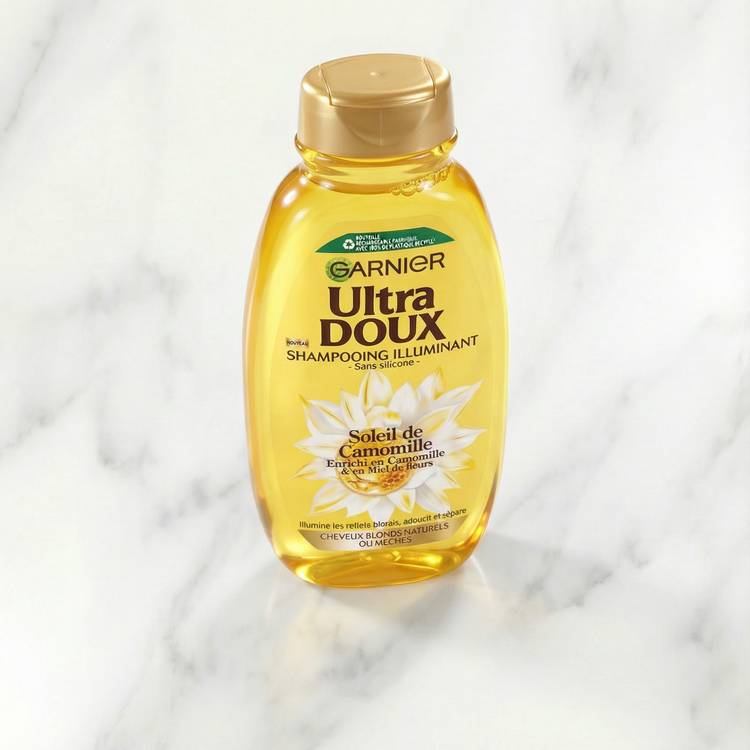 Shampoing illuminant pour cheveux blonds signé Garnier. Il mise sur la camomille, plante maline connue pour ses vertus éclaircissantes toutes douces. Pas besoin de soleil pour raviver les reflets : il apporte brillance et lumière, lavage après lavage, sans jamais agresser la fibre. Idéal pour les cheveux naturellement blonds ou châtains clairs, qu’ils soient colorés ou non.