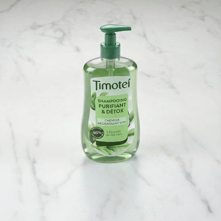 Formulé pour les cheveux qui regraissent vite, le shampooing Timotei Purifiant & Détox associe efficacité et respect du cuir chevelu. Sa formule à 95 % d’origine naturelle, sans silicone, mise sur un ingrédient phare : l’extrait de thé vert bio. Connue pour ses propriétés purifiantes, cette plante redonne fraîcheur et légèreté dès la première utilisation. Le cuir chevelu respire, les racines sont nettoyées, les longueurs restent souples. Un geste simple, un résultat net.