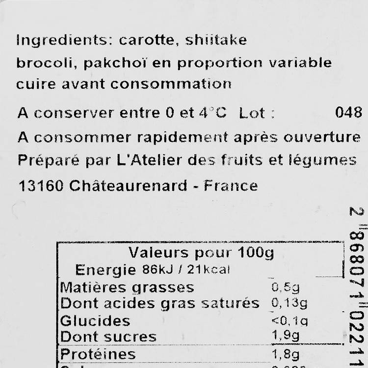 Conseils de conservation : À conserver au réfrigérateur dans son emballage ou dans une boîte hermétique. Idéalement à consommer dans les 3 à 4 jours pour garder le croquant et la fraîcheur des légumes.