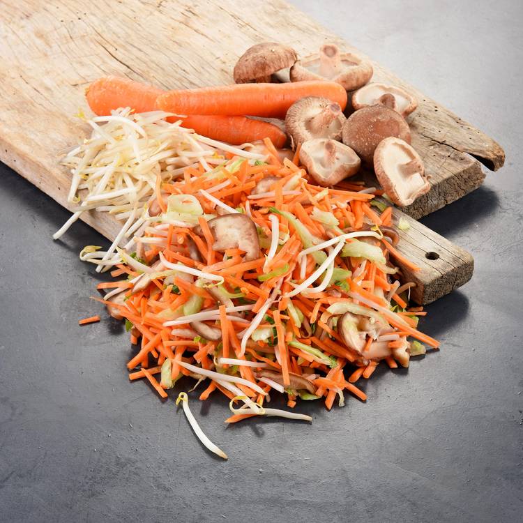 Une anecdote ? Le wok est l’un des ustensiles les plus anciens de la cuisine asiatique, utilisé depuis plus de 2 000 ans en Chine. Sa forme arrondie permet de cuire très vite à feu vif. Résultat : des légumes saisis, croquants et pleins de goût. La street-food avant l’heure.Un ensemble parfait, juste à cuisiner, contenant de la carotte, du shiitake, des haricots mungo et du pak choi pour un wok délicieux.