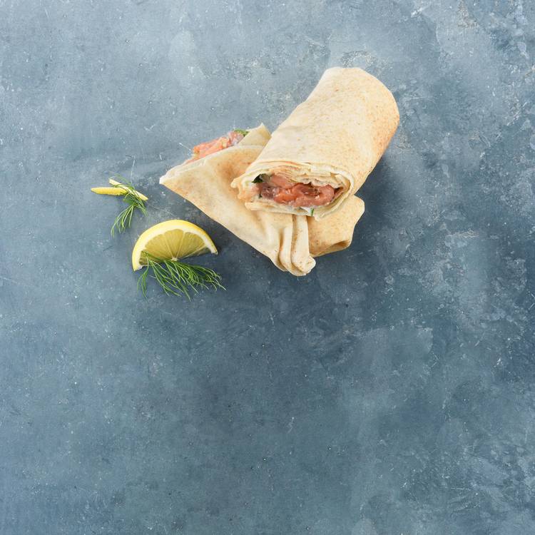 La tortilla moelleuse enrobe le tout, sans masquer les saveurs. Le saumon fumé apporte sa finesse iodée, le concombre sa fraîcheur végétale, et le cream cheese sa texture onctueuse qui lie chaque bouchée. Pas de fioriture, mais un équilibre bien trouvé entre douceur, croquant et caractère.