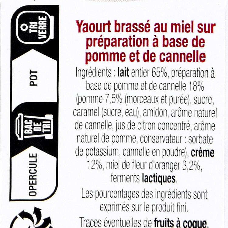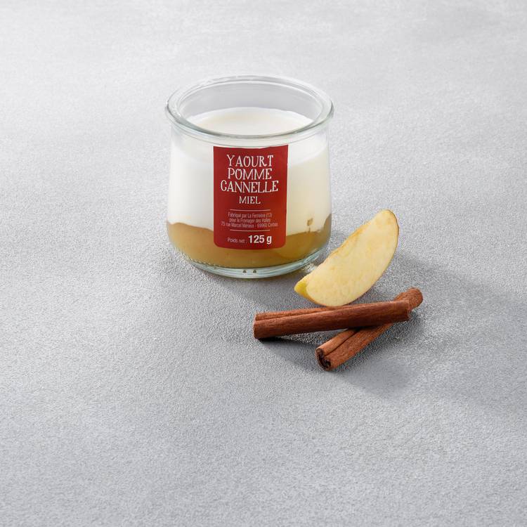 Origine : Un yaourt au lait de vache, brassé pour plus de douceur, posé sur une préparation de pommes délicatement parfumée à la cannelle. Une recette simple, bien faite, qui joue la carte du naturel.