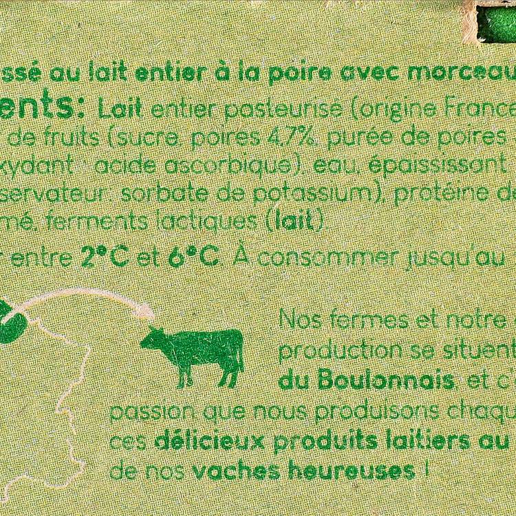 Un yaourt brassé à la poire qui coche toutes les cases : local, crémeux et bien fruité. Il est fabriqué avec le lait de quatre exploitations des Hauts-de-France, au cœur du parc naturel du Marais d’Opale. Côté texture, on est sur du soyeux, avec des vrais morceaux de poire qui apportent une touche fraîche, presque croquante.
