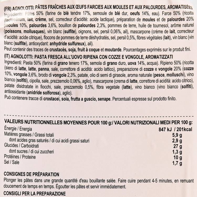 Origine : Fabriqués en Vénétie par Pastificio Artusi, avec un savoir-faire artisanal italien. Le format agnolotti laisse plus de place à la farce qu’une pâte classique, pour un résultat plus gourmand.