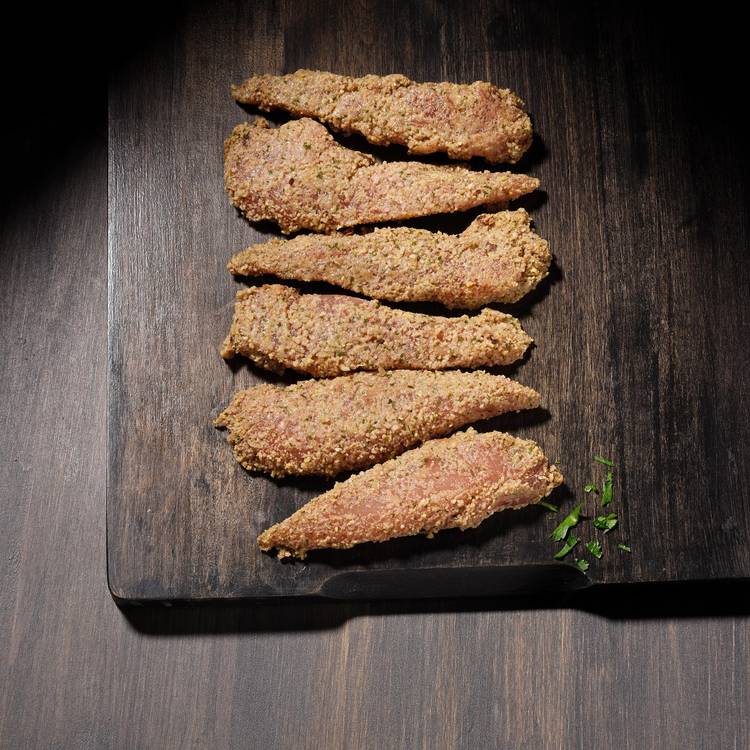 Préparation et cuisson : À poêler à feu moyen avec un filet d’huile pendant 6 à 8 minutes en les retournant régulièrement. La panure doit être bien dorée et la chair cuite à cœur.