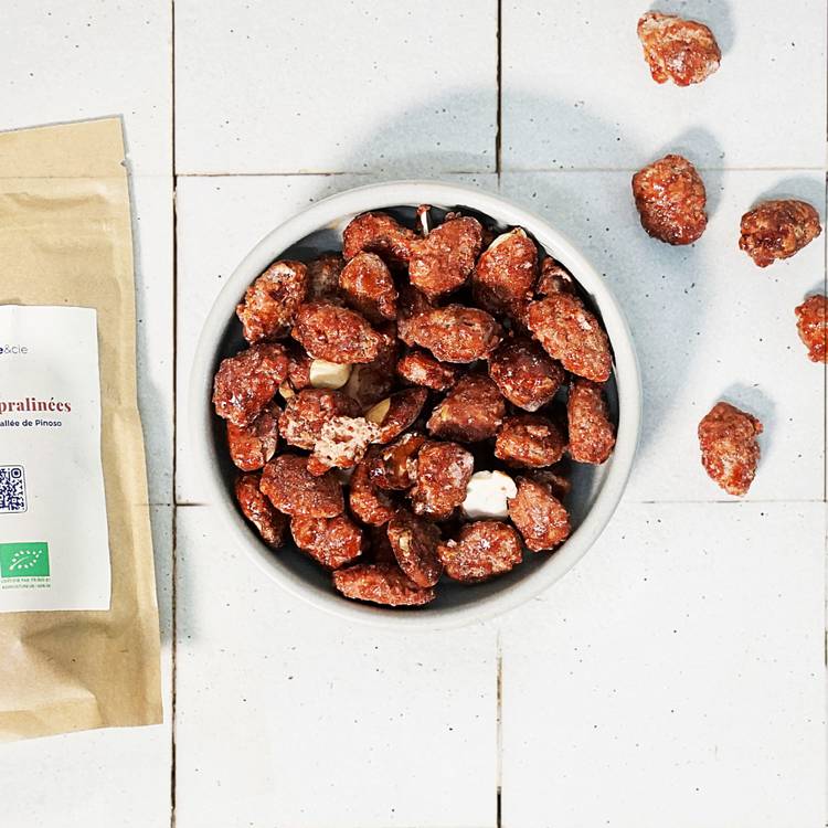 De bonnes amandes craquantes enrobées de sucre caramélisé... Laissez-vous tenter par cette douceur au naturel ! Une amande espagnole c'est pas si banal, quand on sait que 90% des amandes vendues en France viennent de Californie. Cette filière espagnole a été montée par notre partenaire Agro Sourcing, engagé sur le long terme avec les producteurs. Le sucre de canne est issu d'un projet commerce équitable, il provient d'une association de producteurs de canne à sucre du Paraguay, transformée dans une sucrerie à proximité.