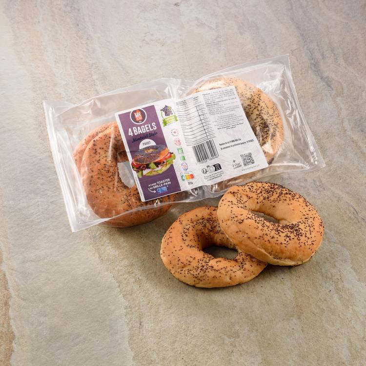 Un bagel dense, moelleux et charnu, à la fois tendre et un peu ferme c’est celui qu’on a envie de remplir généreusement. Le grain de pavot vient donner du croquant et une petite note légèrement noisette sous la dent. On sent la pâte bien levée, le goût rustique et authentique d’un vrai produit “pain”.