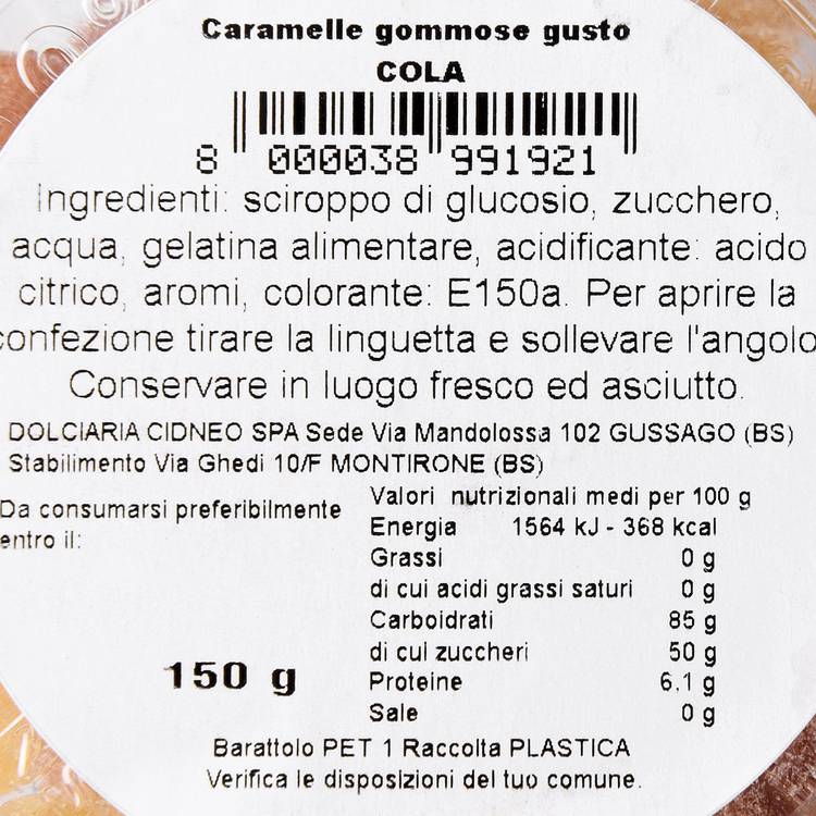 On les grignote à la volée, entre deux stations de métro, en fin de repas ou devant une série. Ils ne prennent pas de place mais prennent toute l’attention. Fabriqués en Italie, ces bonbons jouent la carte du classique bien fait, sans poudre aux yeux ni colorants inutiles. Le E150a donne juste la teinte caramel qu’il faut, l’arôme cola fait le reste. Pas de faux-semblant : ce bonbon colle aux doigts, réveille les papilles et régale les petits comme les grands.