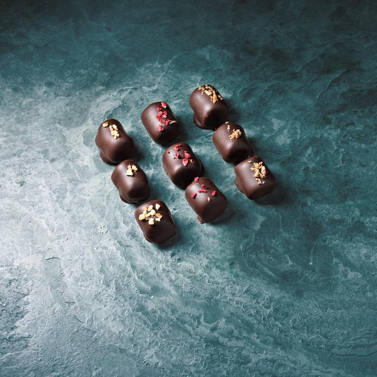 Fondant en bouche, crémeux au centre, avec un équilibre bien dosé entre la douceur du fromage et la profondeur du chocolat. Les inclusions (framboise, caramel, noisette…) apportent chacune leur nuance.