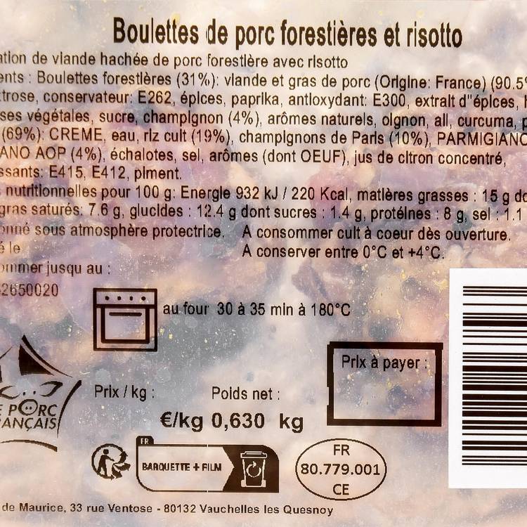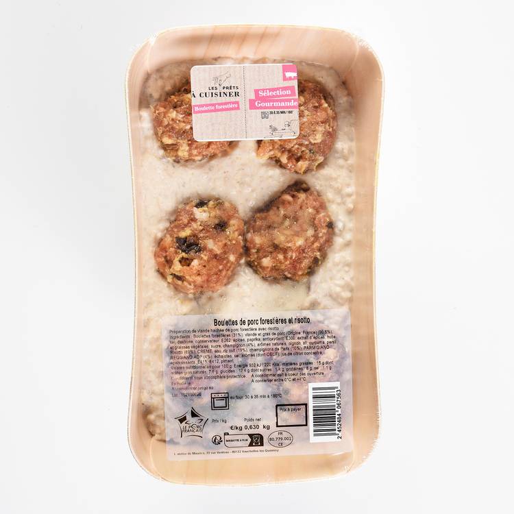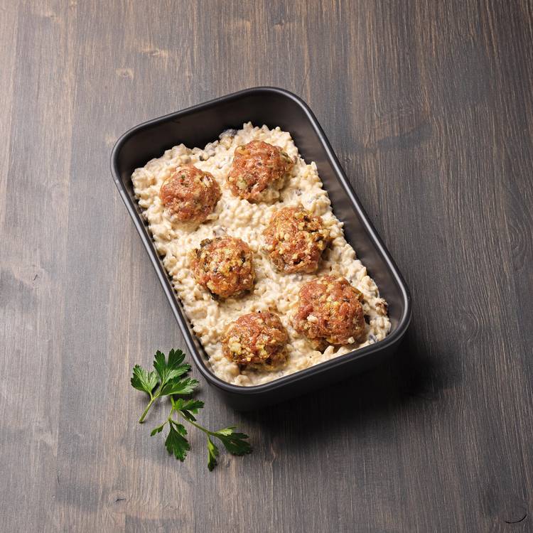 Saveur : Des boulettes tendres et juteuses, relevées par des notes boisées de champignons. Le risotto absorbe le tout, crémeux juste comme il faut, pour une bouchée tout en rondeur.