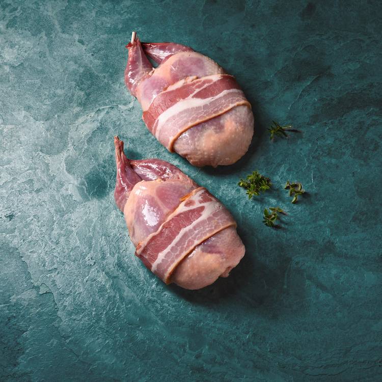 Race de viande : Caille semi-désossée, farcie de foie gras de canard et bardée d’une tranche de poitrine fumée. Petite mais costaude côté goût : elle coche toutes les cases du plaisir carnivore et raffiné.
