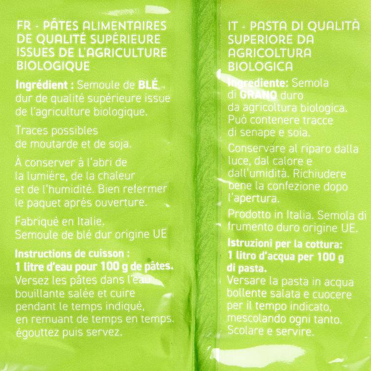 Conseils d'utilisation : cuisson dans une eau bien salée, légèrement al dente pour garder de la mâche. Parfaites avec des sauces crémeuses, du fromage fondu, ou simplement un filet d’huile d’olive.