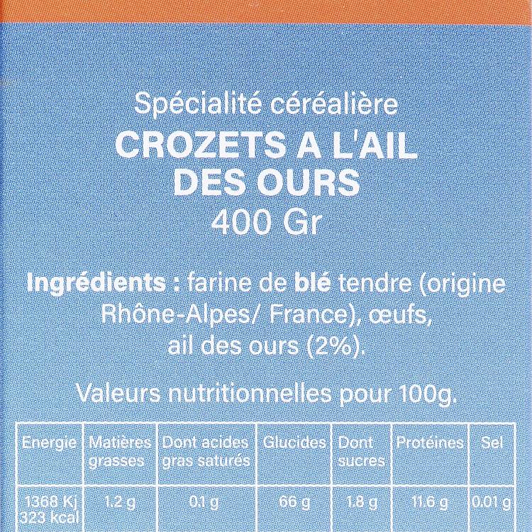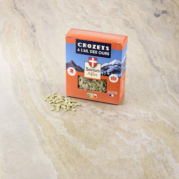 Origine : Spécialité savoyarde par excellence, les crozets sont ici parfumés à l’ail des ours, plante sauvage emblématique des sous-bois alpins. Une touche aromatique naturelle qui apporte fraîcheur et caractère sans masquer le goût du blé.