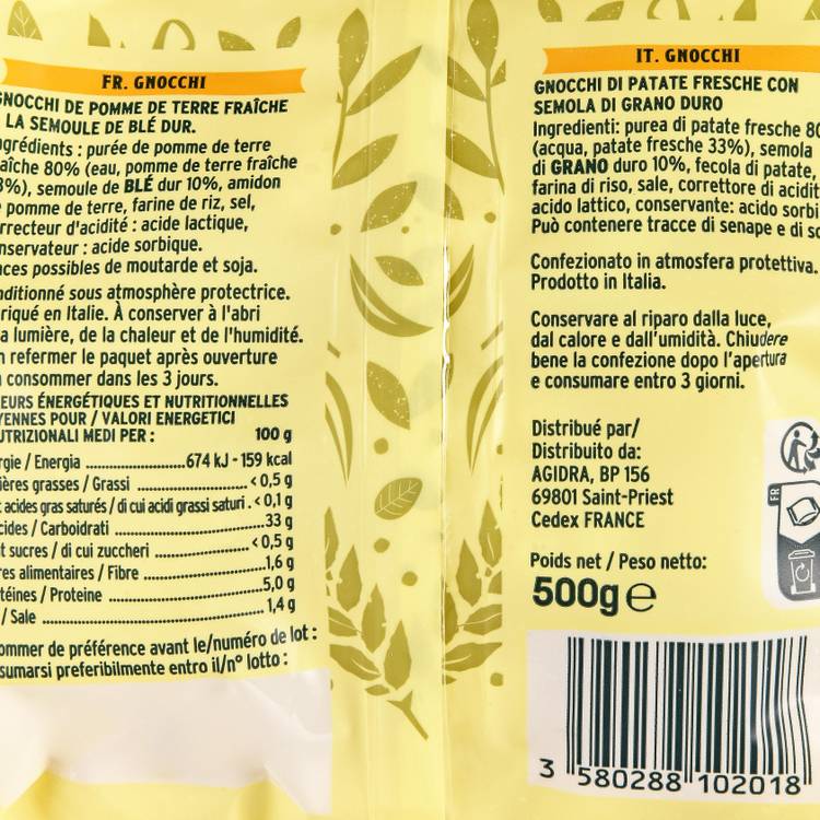 Origine : Ces gnocchi Conti sont élaborés en Italie à partir de pommes de terre fraîches et de semoule de blé dur. Une combinaison qui assure à la fois le fondant typique des gnocchi et une bonne tenue, même après cuisson.