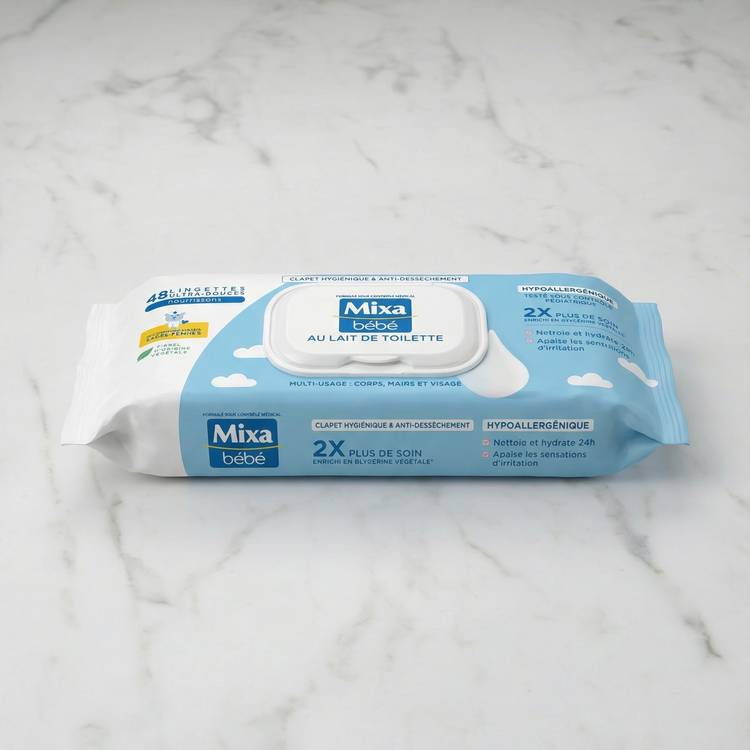 Ultra-douces, ces lingettes au lait de toilette Mixa ont été pensées pour respecter la peau délicate des nourrissons, dès les premiers jours. Leur texture souple glisse tout en douceur, sans frotter, sans irriter. Enrichies en glycérine végétale, elles hydratent jusqu’à 24h et laissent une sensation de peau propre, souple, comme après un soin. Une lingette pour le visage, les mains ou le siège, à dégainer à chaque petit moment du quotidien. Le lait de toilette apporte ce petit plus sensoriel : une odeur tendre, une texture moelleuse, une efficacité redoutable en un seul geste.