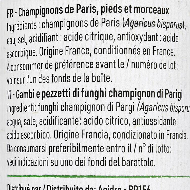 Origine : Champignons de Paris cultivés en France, découpés puis mis en conserve pour conserver leur goût naturel. Une préparation simple, pensée pour la cuisine du quotidien.