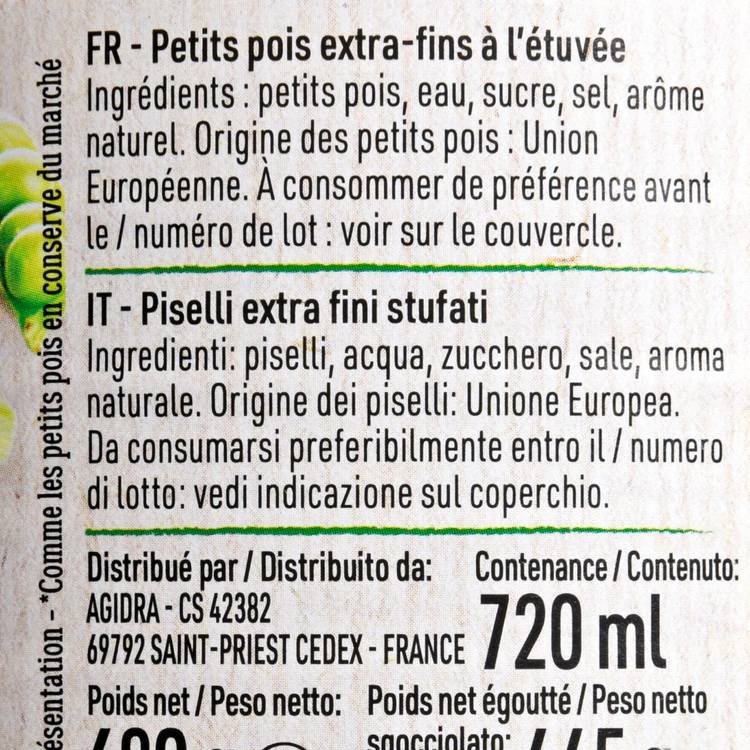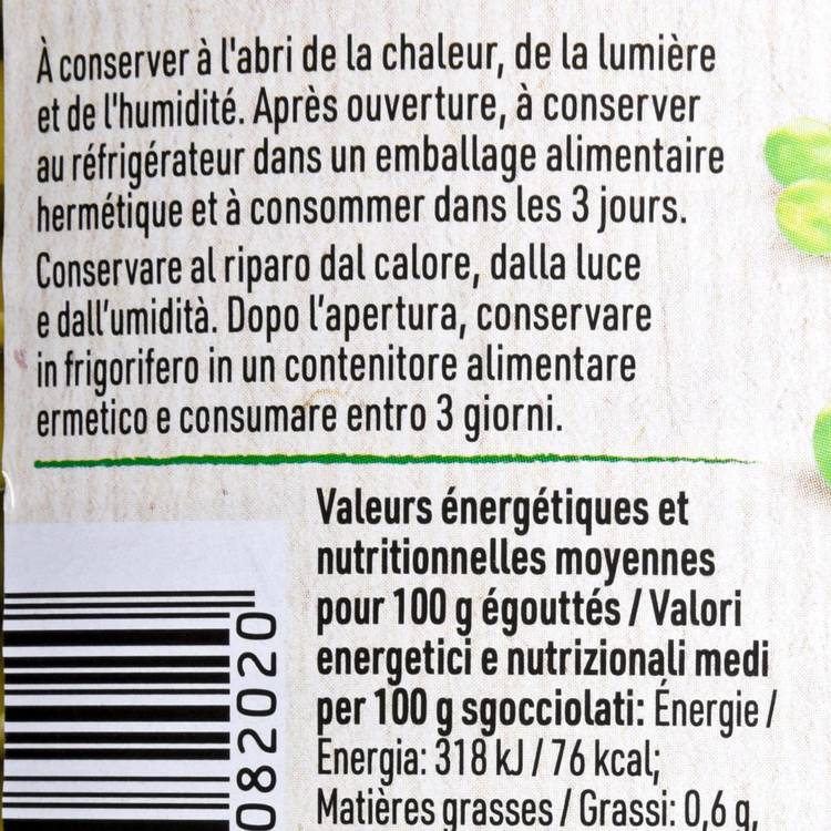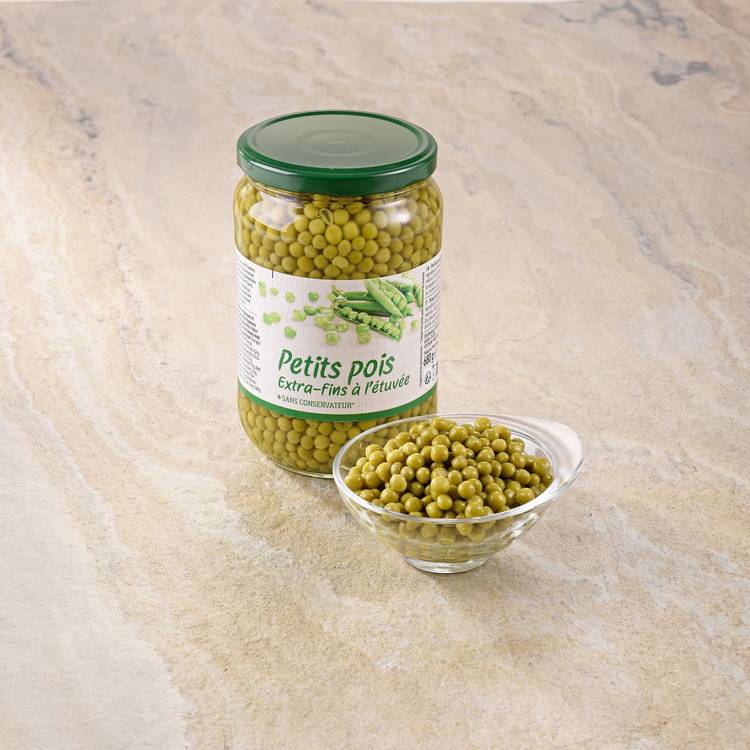 Origine : Des petits pois récoltés à un stade précoce pour conserver finesse et douceur, puis simplement mis en bocal avec de l’eau et du sel. Rien de plus, rien à masquer.