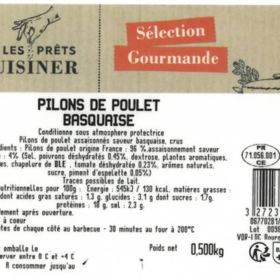 Race de viande : Poulet sélectionné pour sa tendreté, sublimé par une marinade aux accents basques, entre gourmandise et légèreté.