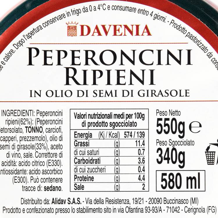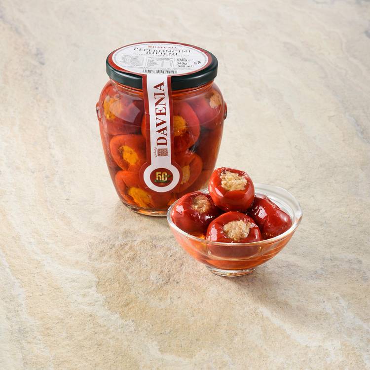 Des piments soigneusement préparés, farcis d’un mélange à base de thon et de légumes, puis conservés dans l’huile selon une tradition très répandue dans le sud de l’Italie. Un vrai produit d’antipasti.