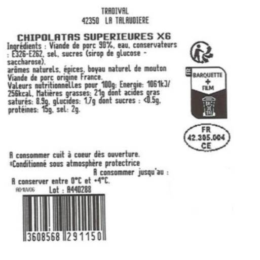 Race de viande : Pur porc, hachage fin, boyau naturel. Une chipolata qui respecte la tradition, avec une viande sélectionnée pour sa tenue et sa saveur.