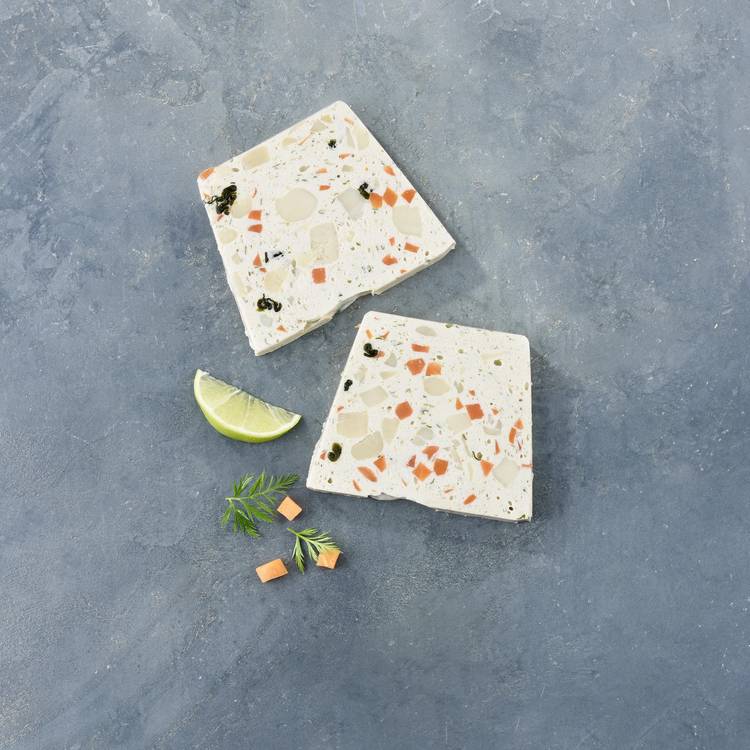 Saveurs & équilibre : La noix de Saint-Jacques donne le ton avec sa douceur légèrement sucrée et iodée. Le fumet de poisson vient souligner l’ensemble avec finesse, pour une terrine harmonieuse, nette, tout en subtilité marine.