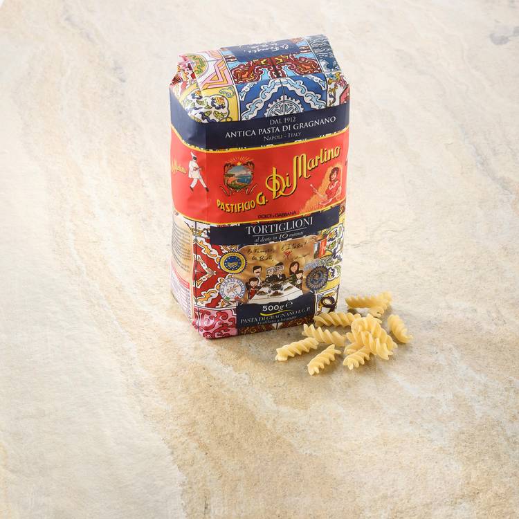 La marque Di Martino est née à Gragnano (Campanie) en 1912, et perpétue depuis trois générations un savoir‑faire de pâte sèche d’exception. Elle utilise une semoule de blé dur 100 % italienne, combinée à l’eau pure des sources des Monts Lattari. Avant d’être extrudée au moule de bronze et longuement séchée à basse température pour obtenir cette texture naturellement rugueuse qui « accroche » les sauces.