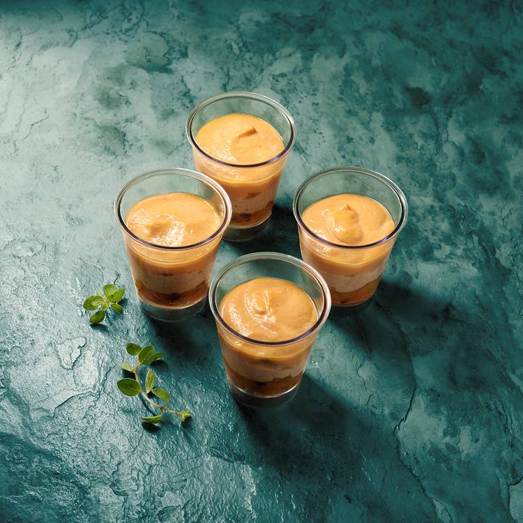 Découvrez l'alliance parfaite entre saveur et texture avec notre verrine de thon et patate douce. 🌟 Un mets consensuel qui séduira tous vos convives, cette délicieuse recette se compose de carotte, patate douce, thon et butternut, harmonisés dans une préparation crémeuse et onctueuse.