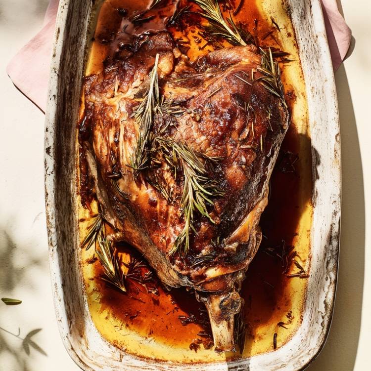 Préchauffez votre four à 150°C. Dans un plat, déposez l’épaule, badigeonnez-la de miel, ajoutez l’ail écrasé et le romarin. Salez, poivrez, arrosez d’huile d’olive et versez le bouillon au fond. Enfournez pour 4 heures, en arrosant régulièrement.
